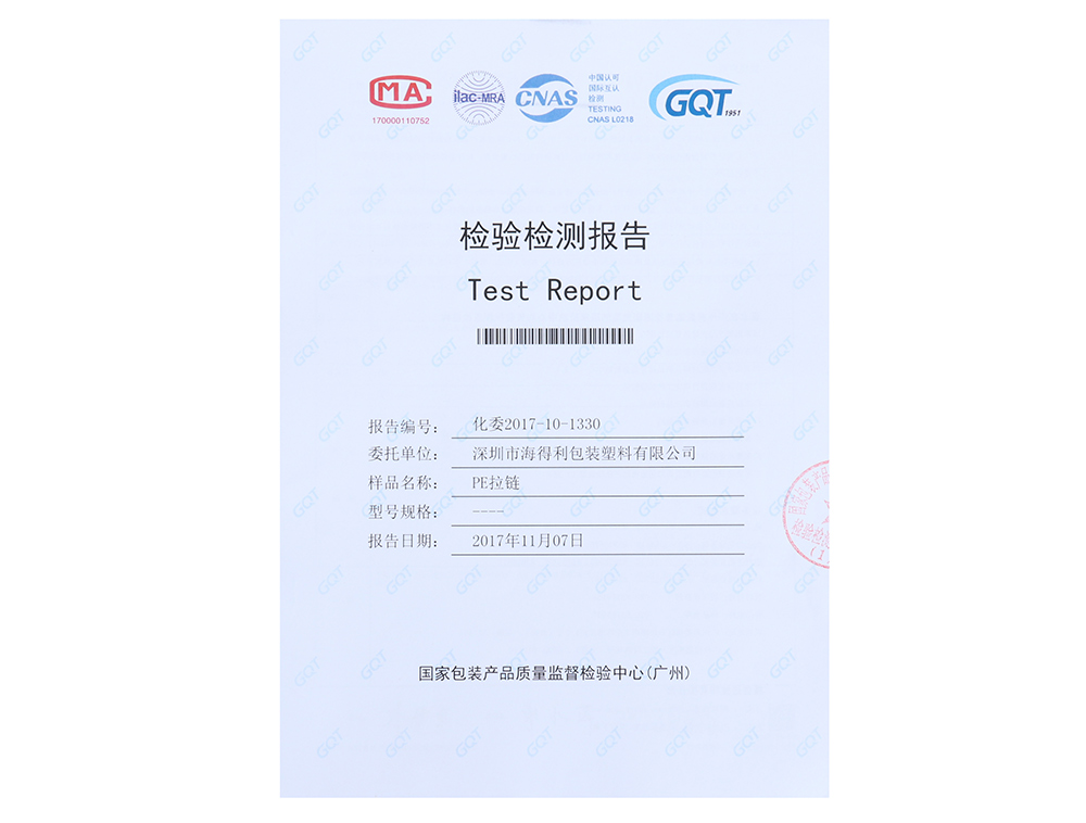 PE拉鏈檢測報告
